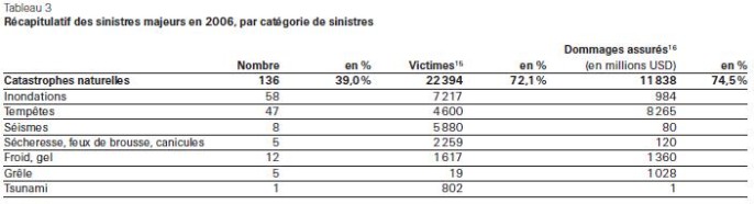 Liste de quelques unes des catastrophes naturelles majeures survenues en 2006: