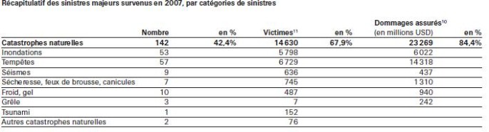 Liste de quelques unes des catastrophes naturelles majeures survenues en 2007:
